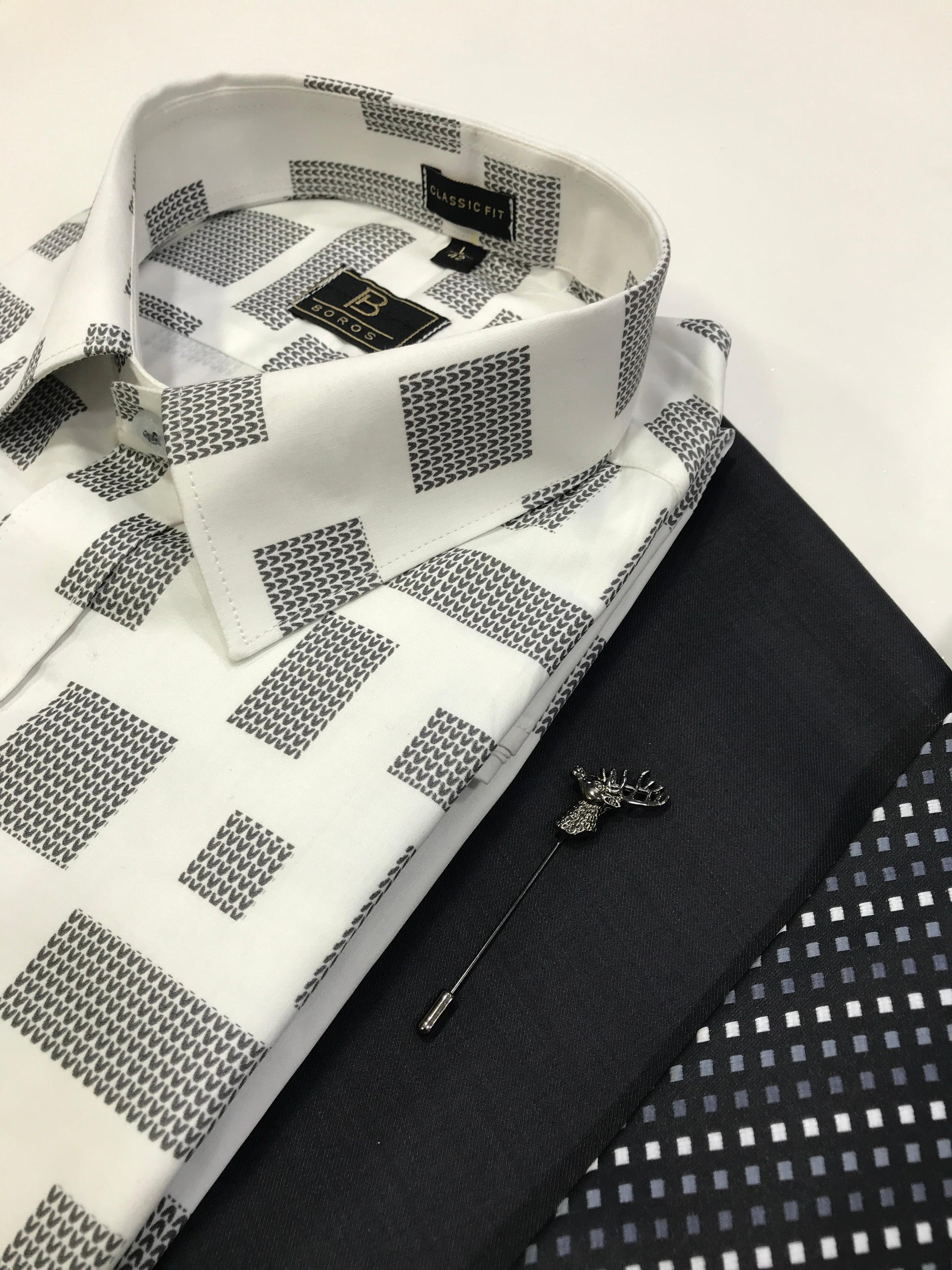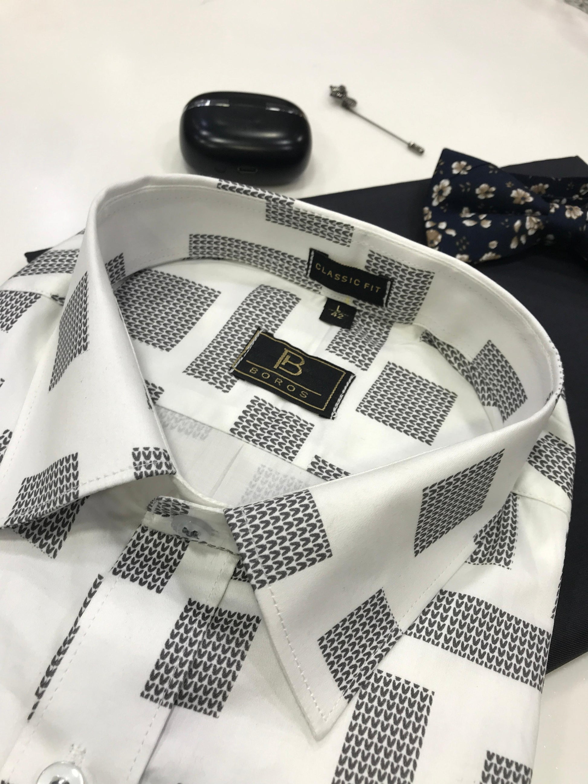 Welcome our most stylish shirt in a new colour . This Atlantic Light Blue Formal shirt is created with 100% cotton and dobby print to obtain a softer and richer look. It has cut - away collar and half sleeves .