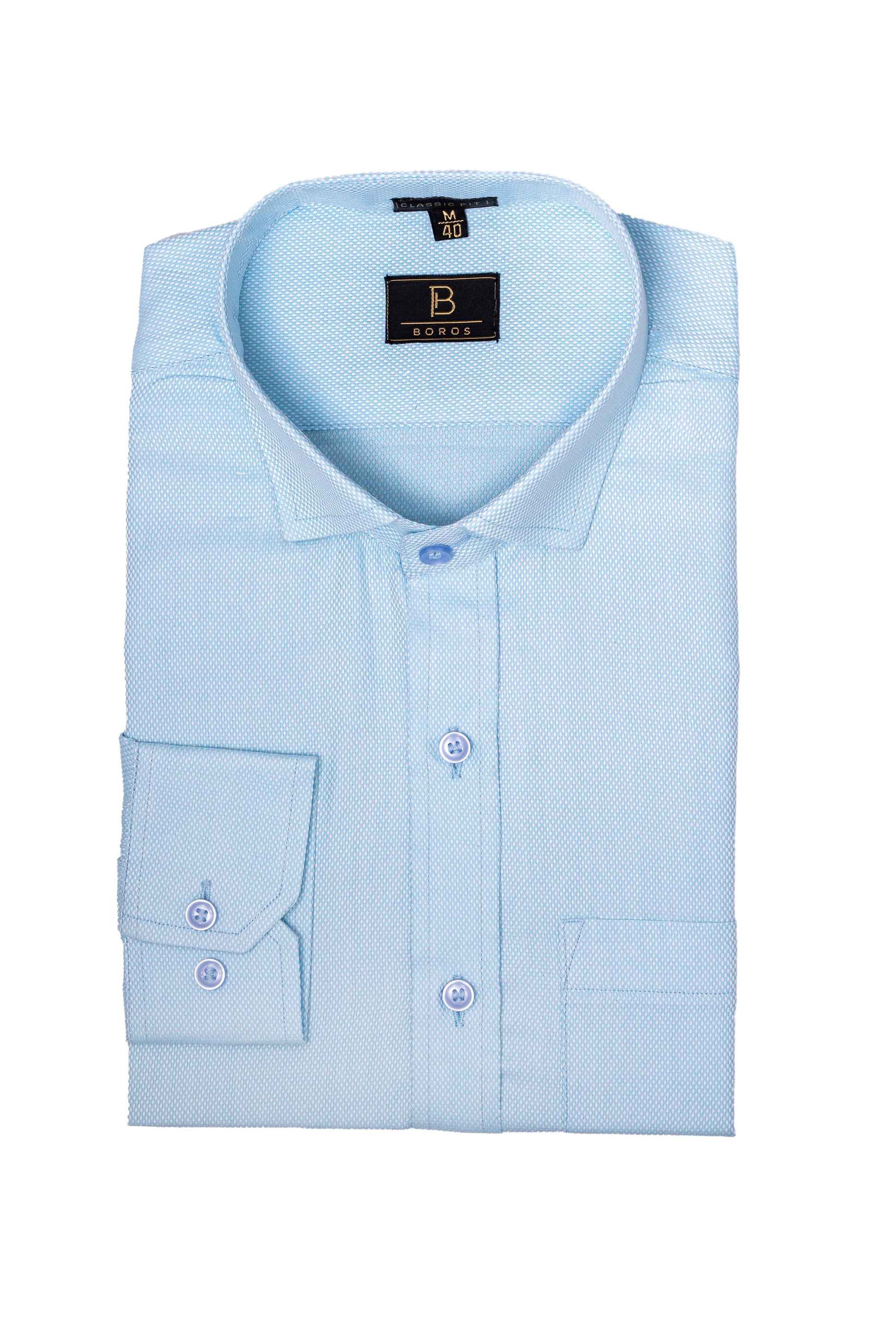 Welcome our most stylish shirt in a new colour . This Atlantic Light Blue Formal shirt is created with 100% cotton and dobby print to obtain a softer and richer look. It has cut - away collar and half sleeves .