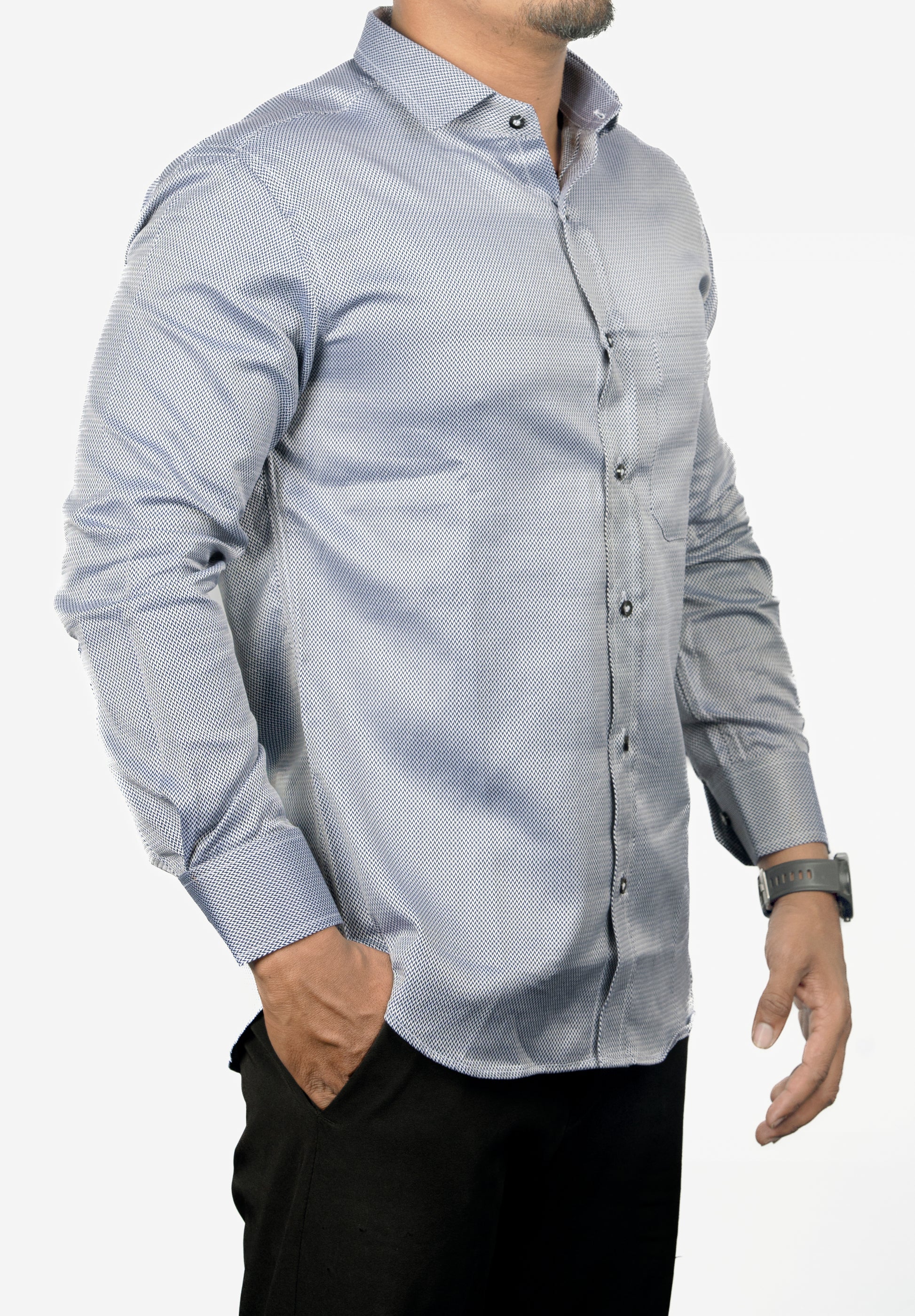 Welcome our most stylish shirt in a new colour . This Atlantic Light Blue Formal shirt is created with 100% cotton and dobby print to obtain a softer and richer look. It has cut - away collar and half sleeves .