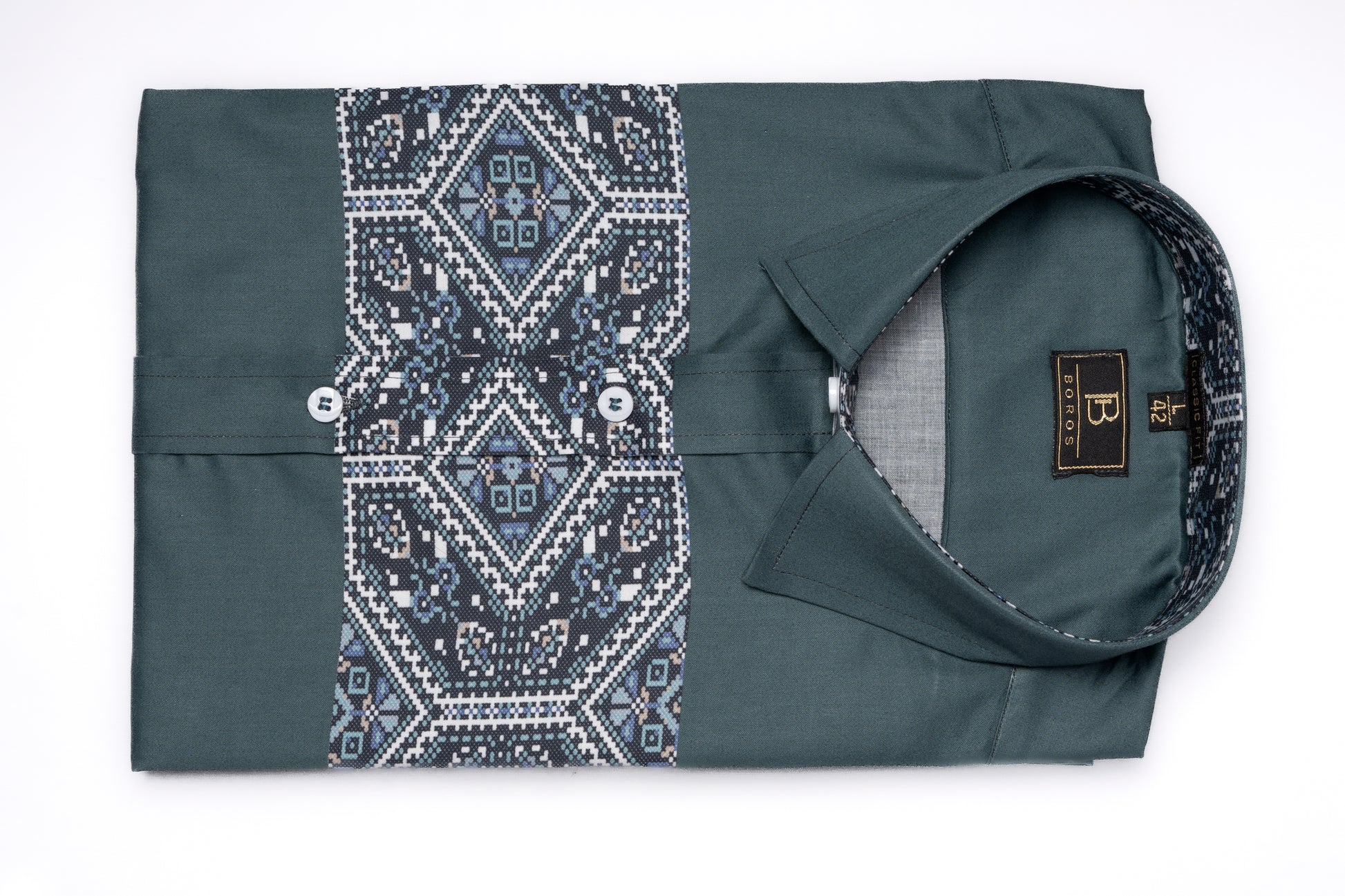 Teal Green Pannel Print Shirt
